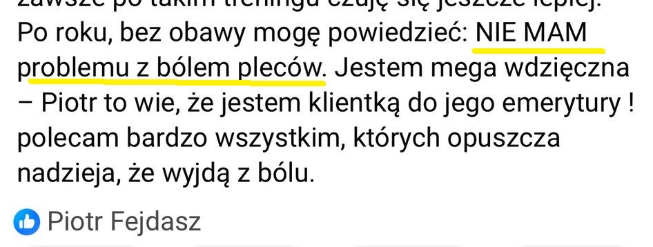 A to opinia mojej klientki, która walczyła z bólem pleców od 2 lat